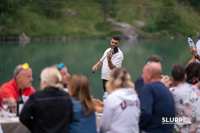 Pochi ingredienti: un laghetto incastonato tra le montagne di Sestriere, una lunghissima tavolata dove sedersi con gli amici, gli antipasti della tradizione e la gran grigliata mista di carne preparata dal QB Restaurant Le Caveau di Sestriere accompagnati dalle migliori bollicine e un dj-set di Dawid Gurbowicz con sax e violino per deliziare l'attesa delle Perseidi.